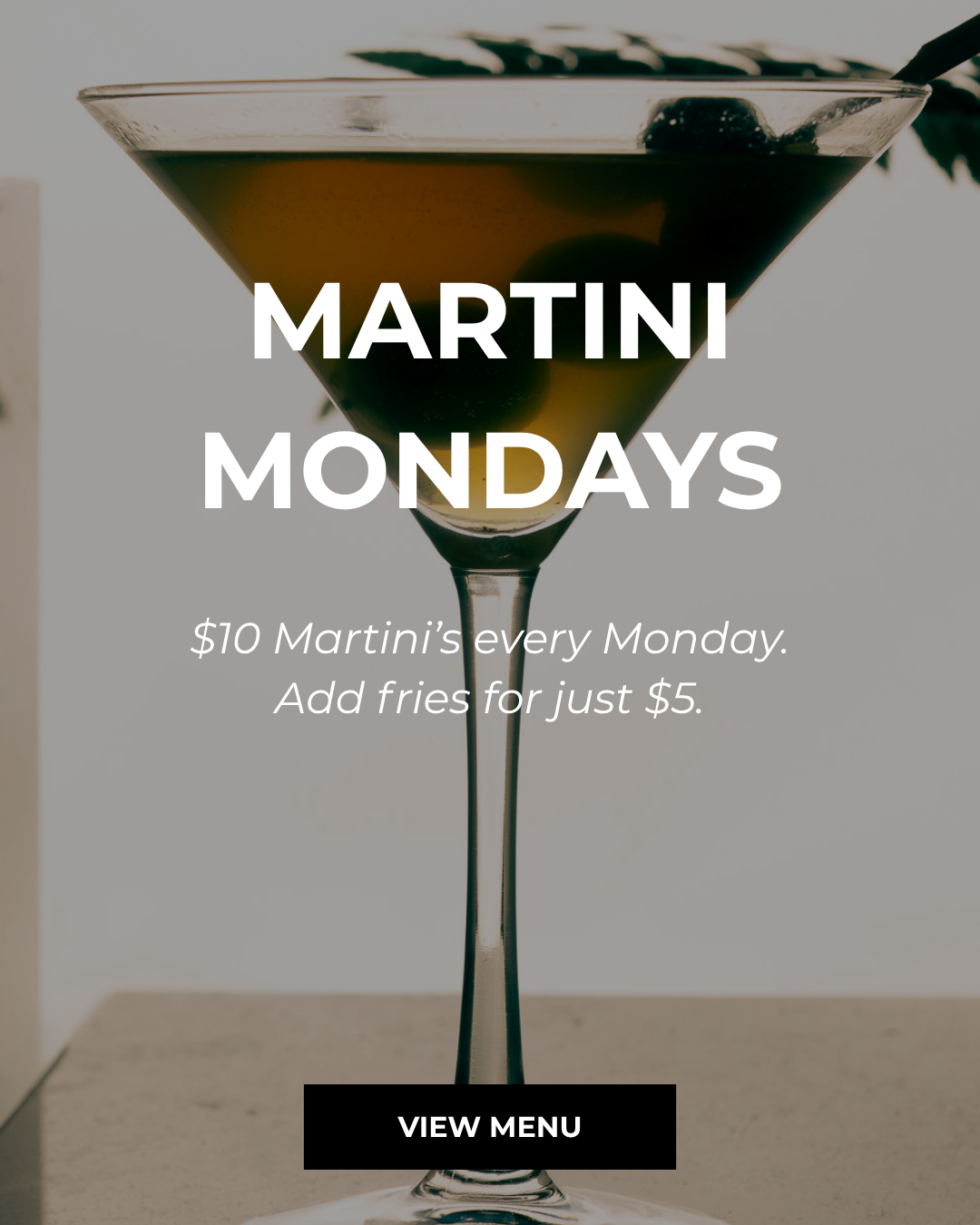 $10 martinis every Monday plus $5 fries to snack on while you sip.
